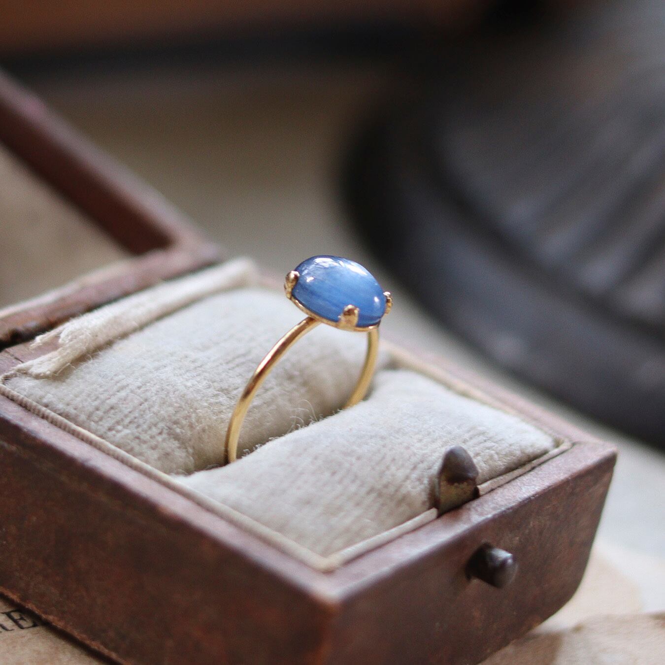 使用したのは満天の星々を湛えた明るい夜空のような石、カイヤナイト。