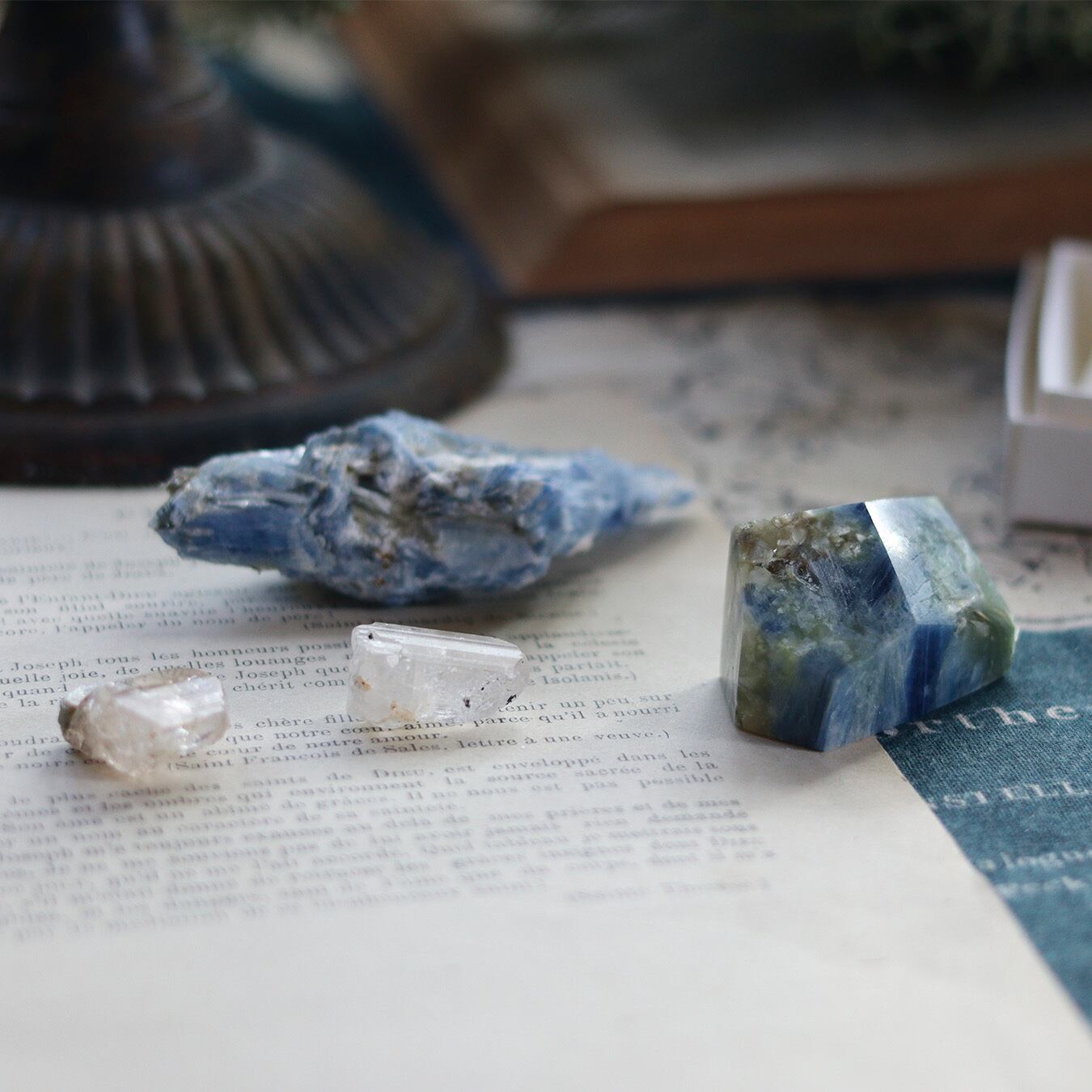 カイヤナイトの青は、満ち足りた気持ちで眠りにつく日の夜の空のような、安らいで、微睡んだ青。