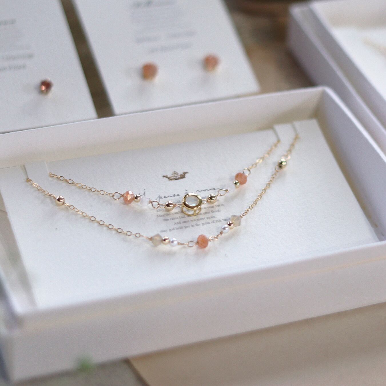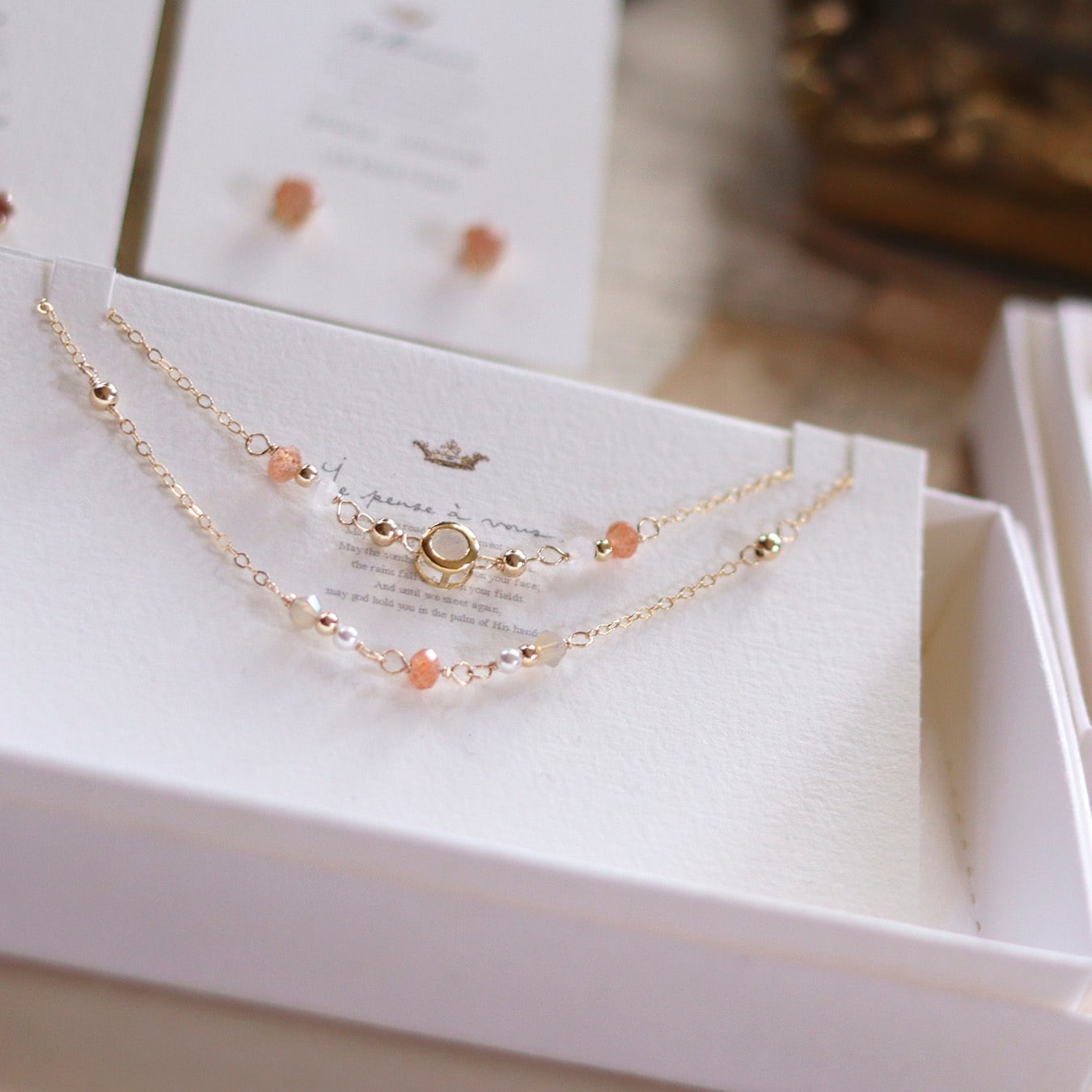 サンストーン×ムーンストーン/Candy charm 14KGF 2連Bracelet
