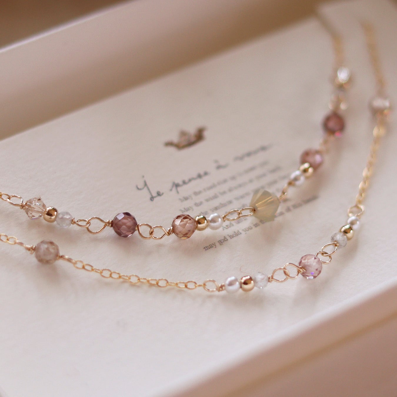 宝石質の天然石を使用した14KGFの2連ブレスレットのシリーズ。